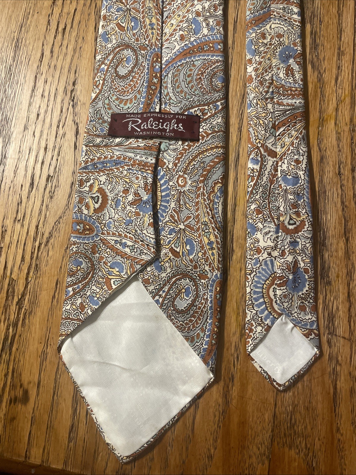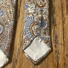 This vintage Liberty of London silk paisley tie is a classic men's accessory with a designer touch. Made in the USA from 100% silk satin fabric, this multicolor tie features a preppy paisley pattern that adds a touch of sophistication to any outfit. The classic width and timeless style make it a versatile piece that can elevate any ensemble. Perfect for those who appreciate high-quality craftsmanship and a unique, retro aesthetic.