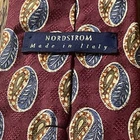 This vintage Nordstrom silk foulard paisley tie is a classic and stylish accessory for men. Made in Italy with 100% silk satin fabric, this designer tie features a preppy multicolor paisley pattern that exudes sophistication and charm. The classic width and timeless appeal make it a versatile addition to any formal or casual outfit, adding a touch of luxury and heritage to your ensemble.