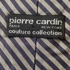 This Vintage Pierre Cardin Couture Striped Tie is a luxurious men's necktie made in Italy from 100% silk satin. The classic multicolored design exudes a preppy style, perfect for adding a touch of sophistication to any formal outfit. With its designer brand and vintage appeal, this tie is a high-quality and versatile accessory for the modern gentleman.