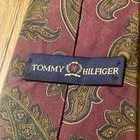 This vintage Tommy Hilfiger silk paisley tie is a classic and stylish accessory for men, featuring a preppy design with a multicolor paisley pattern. Made in the USA with 100% silk fabric, this designer necktie exudes a timeless and sophisticated charm that is perfect for any formal or professional occasion. Its classic width and high-quality material make it a versatile and high-quality addition to any man's wardrobe.