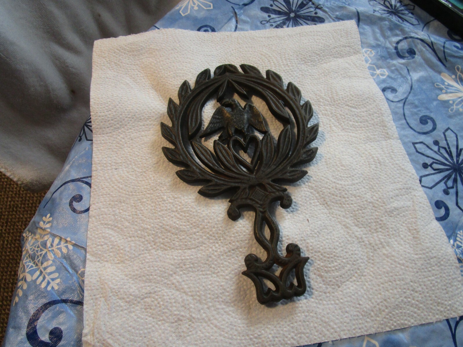 THIS IS A VINTAGE CASIRON EAGLE FOOTED TRIVET EXPERTLY CRAFTED~HIGH QUALITY 5.-1/4" WIDE 8-1/4" IN LENGTH 1 POUND IN WEIGHT [SELLERS NOTE~~BP#21 SHELF]