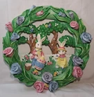 Easter Bunny Eggs Flowers Birds Vintage Easter Wreath Bunnies Resin Approx 12" tall see pictures for measurements I consider to be in VERY GOOD condition Please view all photos zooming in on them as they are part of the description for you to judge condition Will ship either USPS, Fedex or UPS depending on the location of where buyer lives. IMPORTANT - if ships via UPS or Fedex they require a home delivery address as they cannot deliver to post office boxes - NO POST OFFICE BOX
