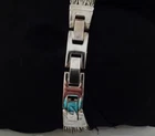 This vintage Ecclissi Mother of Pearl Liquid Silver wristwatch for women is a stunning piece that will surely catch anyone's attention. The watch features a beautiful mother of pearl face and sterling silver, liquid silver band. The watch is 925 and has a reference number of 32840. The watch is vintage and does not come with original box/packaging or papers. But with its unique design and elegance, it is still a wonderful addition to any watch collection.