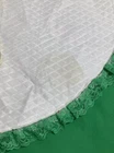 Has age related storage stains but doesn’t feel like it has ever been used. Feels crisp. Tinge of water stain on back but doesn’t seep onto front. I took pictures of all discolorations and I have not tried to clean. FREE SHIPPING Add a touch of vintage charm to your Christmas tree with this handmade quilted double lace ruffle trim tree skirt. The beige color and medium size make it a perfect fit for any tree stand, while the circle shape adds a unique touch to your holiday decor. Made with high-quality materials, this tree skirt is durable and perfect for multiple holiday seasons. Whether you're looking for a classic or eclectic Christmas tree skirt, this vintage piece is sure to impress. Item has not been laundered. Please use photos for better assessment of the item as well as measurements. Feel free to message me through eBay if you have any questions.