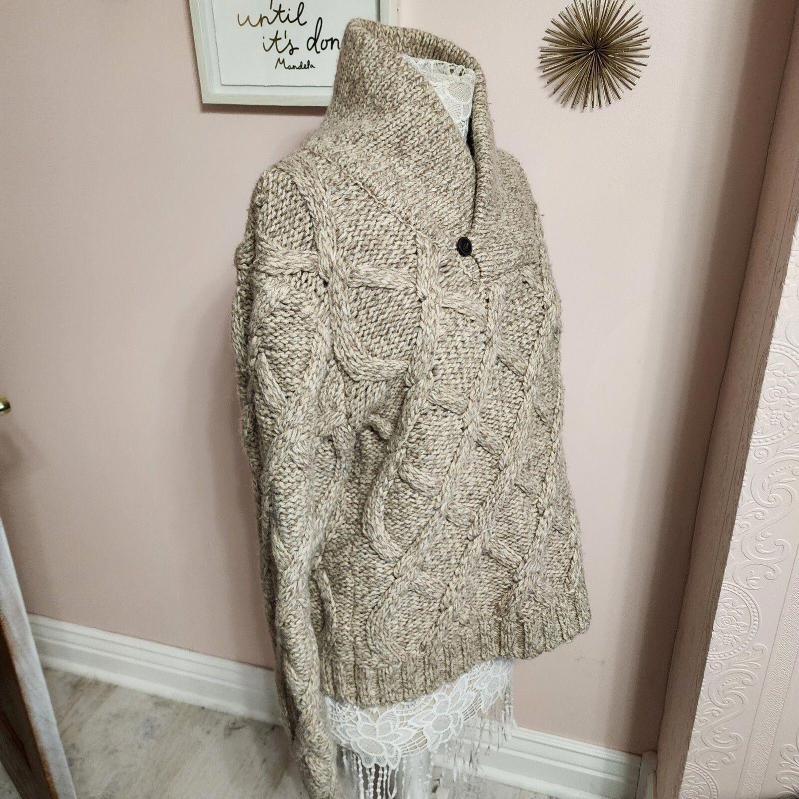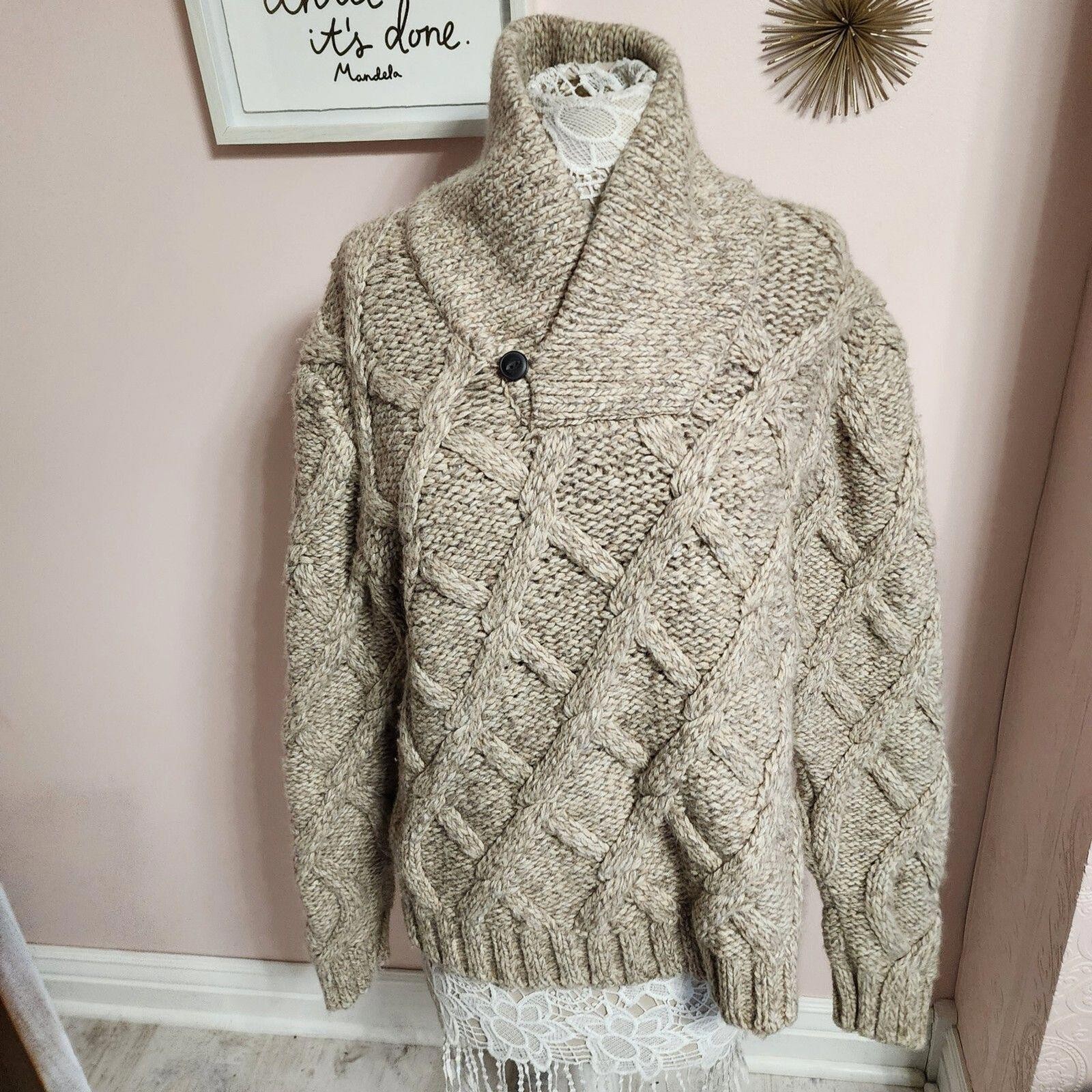 This sweater is an absolute gem—super soft, cozy, and beautifully crafted. The vintage cable knit adds timeless charm, and the wool-cotton blend keeps you warm without being bulky. The fit is perfect, with just the right amount of room for layering. Great condition, no flaws, and the tan cream color goes with everything. A must-have for cold days!