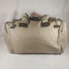 This vintage Eddie Bauer duffle bag is a must-have for any collector or outdoor enthusiast. Made from durable canvas material and featuring a solid beige color, this bag is both stylish and practical. The bag has a size of 18 inches, making it perfect for weekend getaways or camping trips. Not only is this bag lightweight and has a soft case, but it also comes with a unique Mulholland Brothers Ford and Eddie Buaer leather Thank You tag inside. The bag has never been used and is in excellent condition, ready for its next adventure.