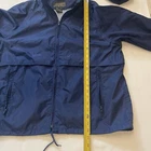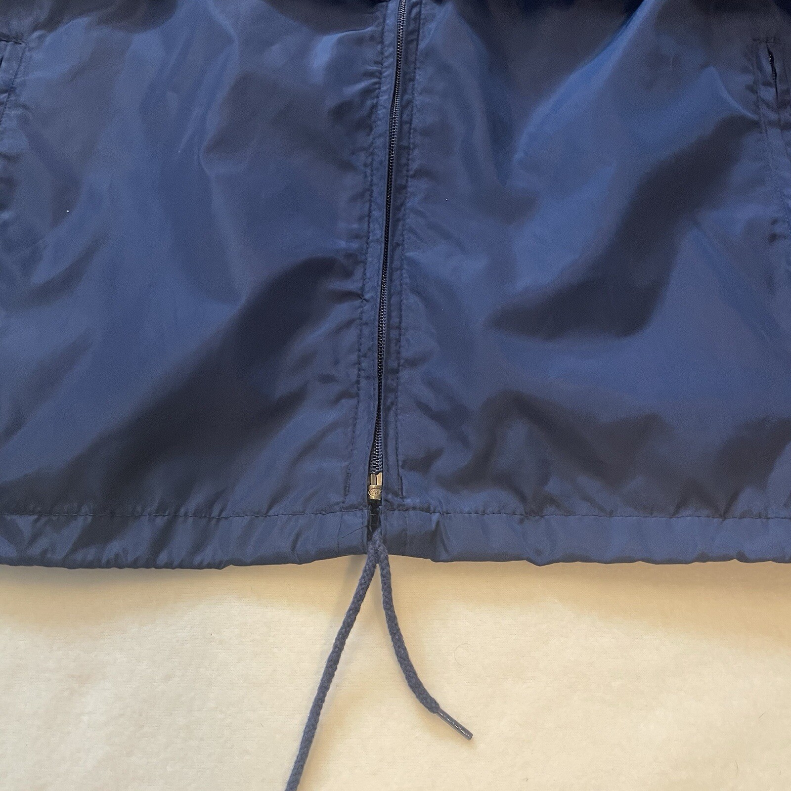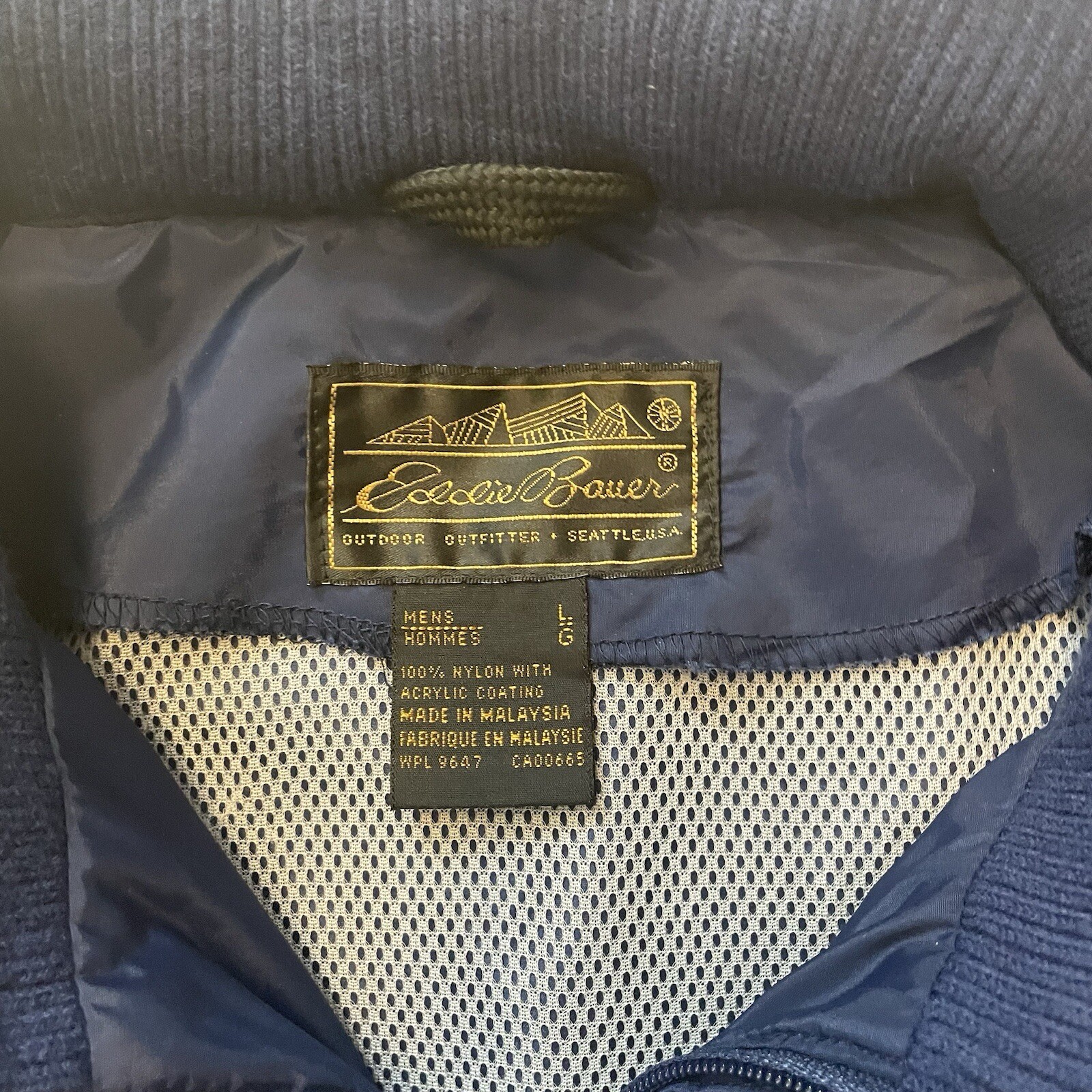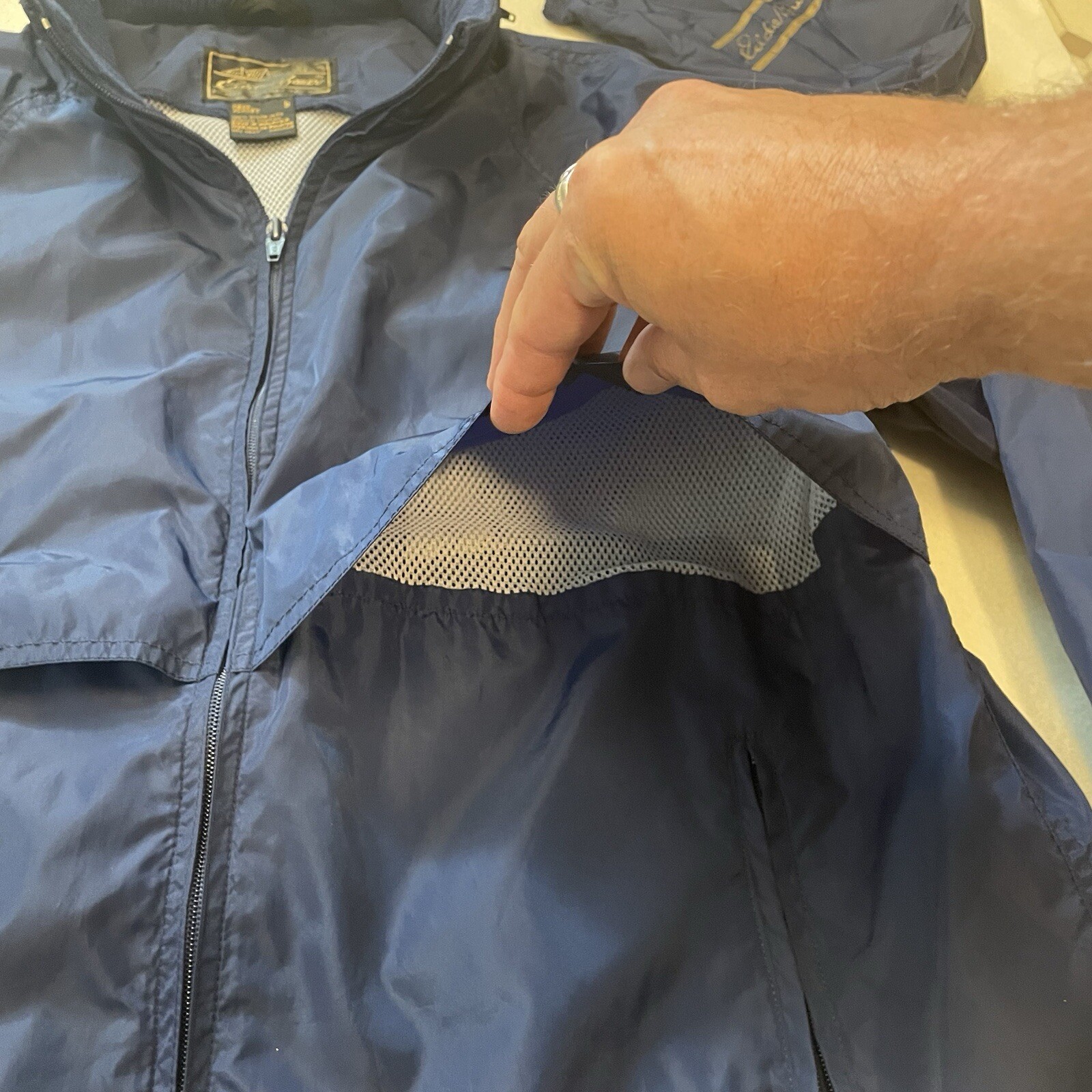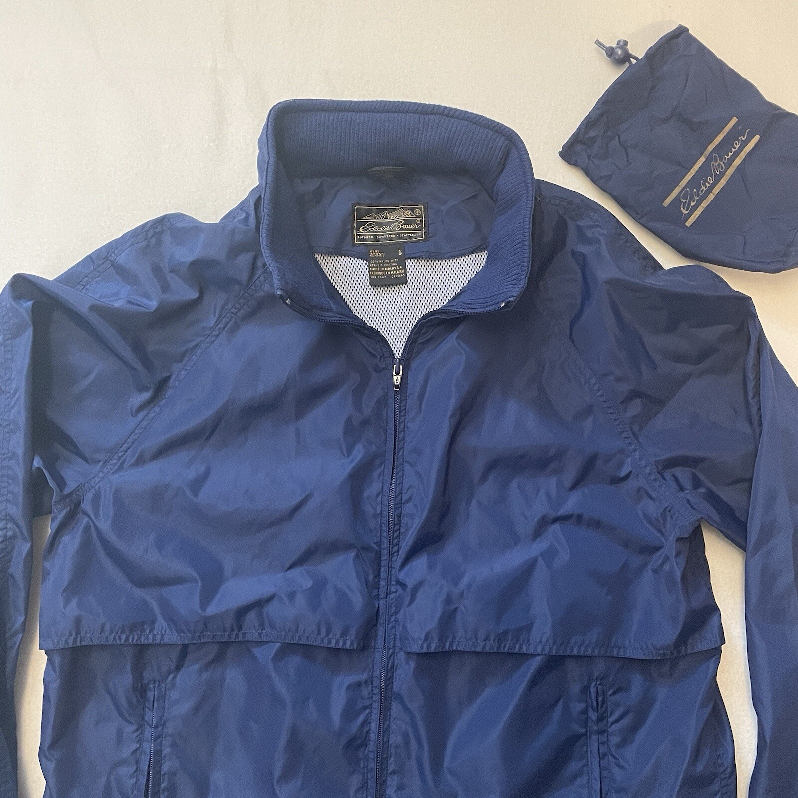 -Used. Sold as is -No rips or stains -Has the bag for packing when not needed -See photos for measurements -Fast shipping!!! This vintage Eddie Bauer windbreaker jacket is a versatile piece that's perfect for any outdoor activity. Vented for comfort. The jacket features a stand-up collar, zip closure, and a hide away hood for added protection against the wind and rain when needed. The softshell fabric is made of nylon and is both lightweight and breathable, making it suitable for all seasons. The jacket also comes with zipped pockets for convenient storage and a packable design for easy transportation. In addition to its practical features, this jacket also has a stylish look with a solid blue color and a mid-length cut. It's perfect for travel, casual wear, or even work. The Eddie Bauer Windshell Rain Jacket is a great choice for anyone who wants to stay comfortable and stylish during their outdoor adventures.