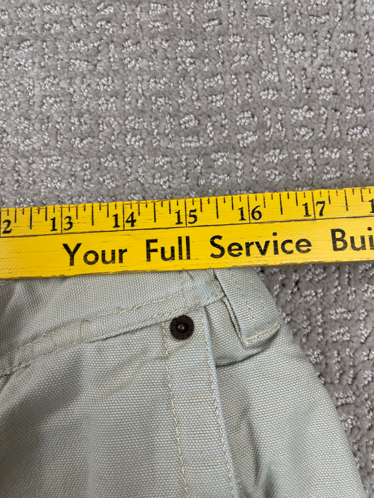 These Vintage Eddie Bauer Pants are a stylish and versatile addition to any man's wardrobe. Made of durable canvas fabric in a solid beige color, these pants feature a double knee design with an elastic waist for added comfort. With a mid-rise fit and straight leg style, they are perfect for casual or travel occasions in any season. The timeless Eddie Bauer brand and classic design make these pants a must-have for any man looking for quality and style in their clothing choices.