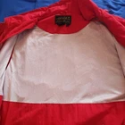 Vintage Eddie Bauer Rain Coat Womens Large. Red with Cinch Waist/Bottom and Neck. Back Vented. Two front zip pockets. Made in USA. Great for outdoors, damp/rainy weather or whenever wind coverage is desired. Loose fit for layering. Excellent condition for a vintage item. SEE LAST PHOTO: Some of the nylon mesh has marks, with the worst of the pulls photographed. This would be consistent with age. Does not impact item. Exterior has no marks. Coat was machine washed and line dried - dried quickly. Returns accepted - buyer pays return shipping.