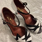 Step out in style with these elegant black and white heels. Perfect for any occasion, these shoes offer a sophisticated touch to your ensemble. Lango Brujo designs by Yuyo Tango Shoes About Yuyo Brujo shoes Specialization: Yuyo Brujo creates dance shoes specifically for Argentine tango, for both men and women. Design and manufacturing: The company's shoes are designed in London and manufactured by hand in Spain. They emphasize high-quality materials and meticulous attention to detail. Key features: Comfortable, gel-padded insoles. Designs that offer stability and support for dancers. An array of high and low heel options. Inspiration: Designs are often inspired by Argentine tango songs and the culture around them. Seen on TV: Yuyo Brujo shoes have been featured on the BBC's television show Strictly Come Dancing.