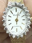 Vintage Elgin Diamond Bezel Gold Plated Quartz Movement Analog Display Watch Japan movement A new battery will be installed prior to shipping