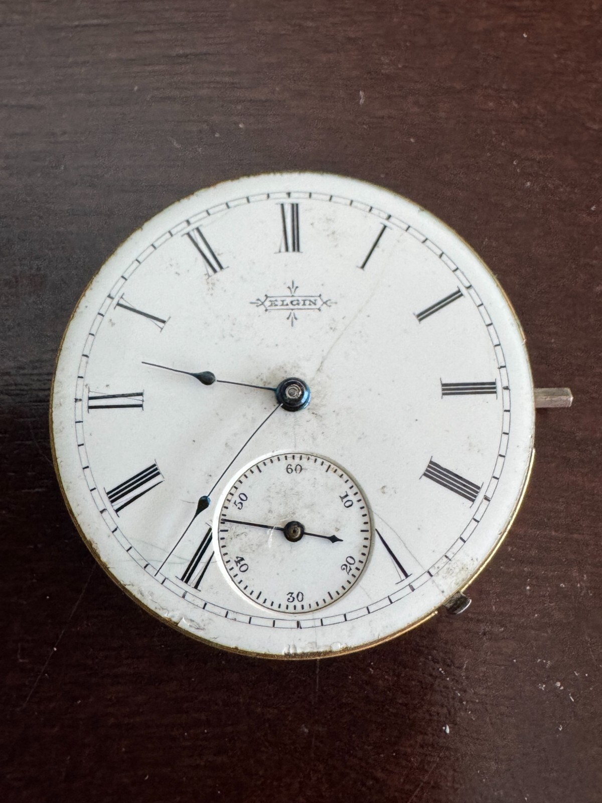 VINTAGE 6 SIZE ELGIN POCKET WATCH MOVEMENT GR. 94 KEEPING TIME DIAL IS HAS MULTIPLE CHIPS AND HAIRLINES Elgin National Watch Co. Grade: 94 Manufacturer: Elgin Manufacturer Location: Elgin, Illinois Movement Serial Number: 2709463 Grade: 94 Model: 1 Series: 2 Class: 52 Estimated Production Year: 1888 Run Quantity: 5,000 Grade/Model Run: 5 of 44 Grade/Model Total Production: 188,000 Size: 6s Jewels: 11j Movement Configuration: Hunting Movement Finish: Gilt Movement Setting: Lever Wind Mechanism: Stem Plate: 3/4 Plate Barrel: Going Train: Quick Regulator: Plain Adjusted: No Railroad Grade: No U.S. Patents: 77078 Case: Various Run ID: 946.94G13.6S37.61M37.H846.L379.11J337 Data Research: 1896 Elgin Serial List 1904 Elgin Serial List 1915 Elgin Serial List 1927/1950 Elgin Serial List Database Version: v52.642