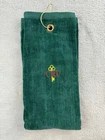 Vintage Embroidered Green CRU Golf Bag Towel Gold Key Symbol