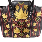 Brand: Unbranded Size: Large Bag Color: Brown, red, green, yellow Style: Large Crossbody or top handle satchel with floral embroidery over brown leather, interior pockets Condition: Preloved, good used condition, small flaw on crossbody strap as pictured