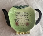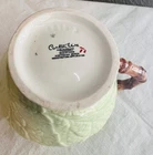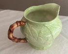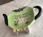 This vintage Carlton Ware creamer and tea bag holder set is a charming addition to any tea time. Made in England during the 1950s, this set features a foxglove pattern on glossy porcelain material. The set includes a creamer with a 4 oz capacity/and a small tea bag holder. The green and flower theme adds a touch of elegance to any table setting. This original, unboxed set is perfect for collectors or those who appreciate vintage pottery and glassware.