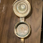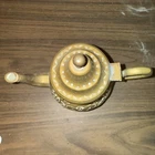 About 9” by 10”. This beautiful vintage Moroccan mid century teapot will grace your home. Please study photos closely and ask any questions! Happy shopping. This vintage engraved brass pitcher is a beautifully handcrafted tea pot from India. The intricate design features flowers and leaves, adding a touch of elegance to any tea-drinking experience. The brass material and Moroccan-inspired details make it a unique and charming piece for serving tea in style.