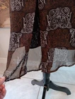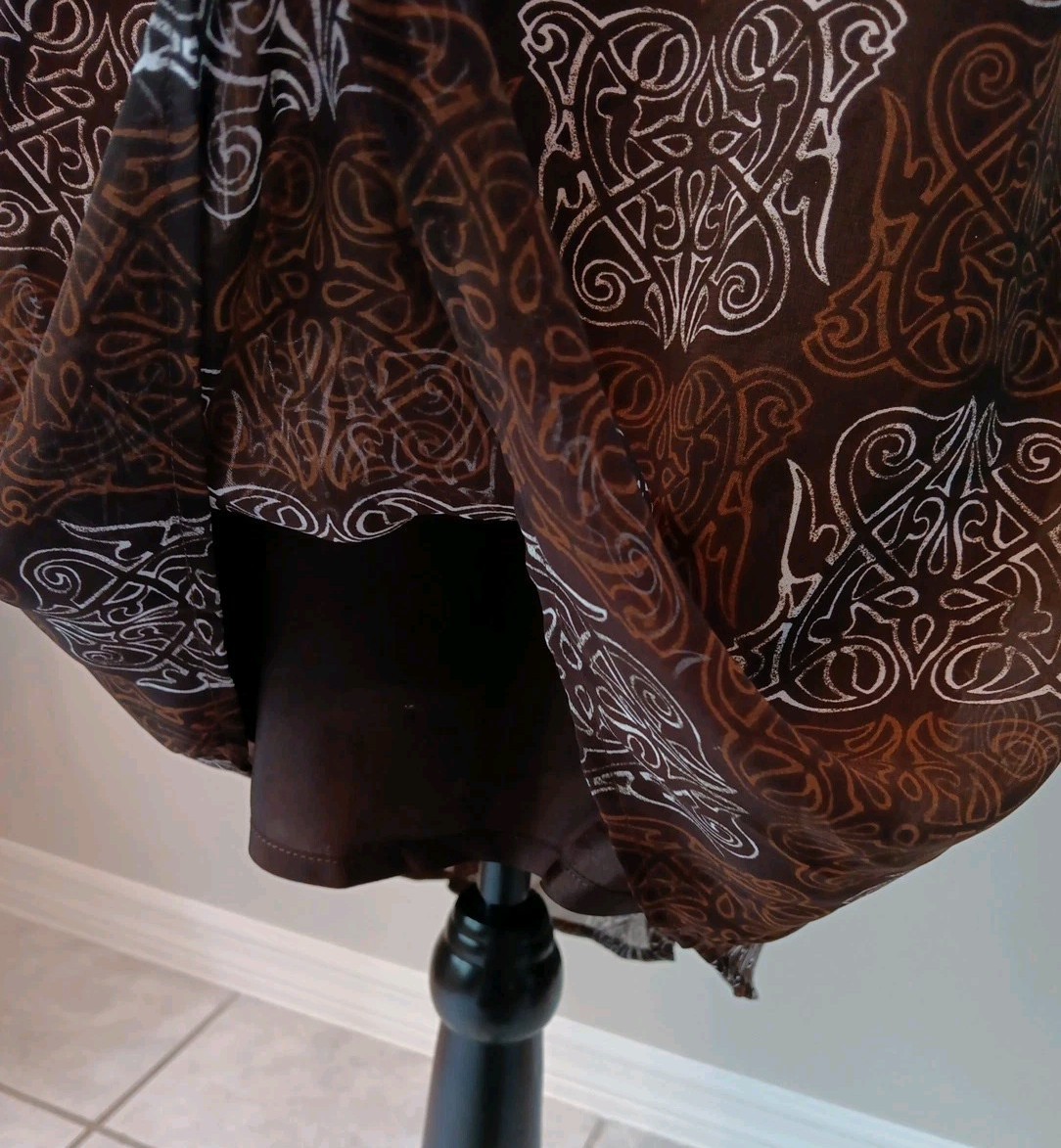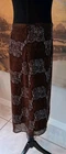 Vintage lined knee length Skirt by Esprit in size 7. The colors are brown, white, and rust. The fabric is polyester. It is a bit longer in the back than the front. It closes with a side zipper. The pattern looks like a Celtic knot. Please see photos for measurements as vintage sizes don't always correspond to contemporary ones. Please message me for additional photos, measurements, or information.
