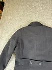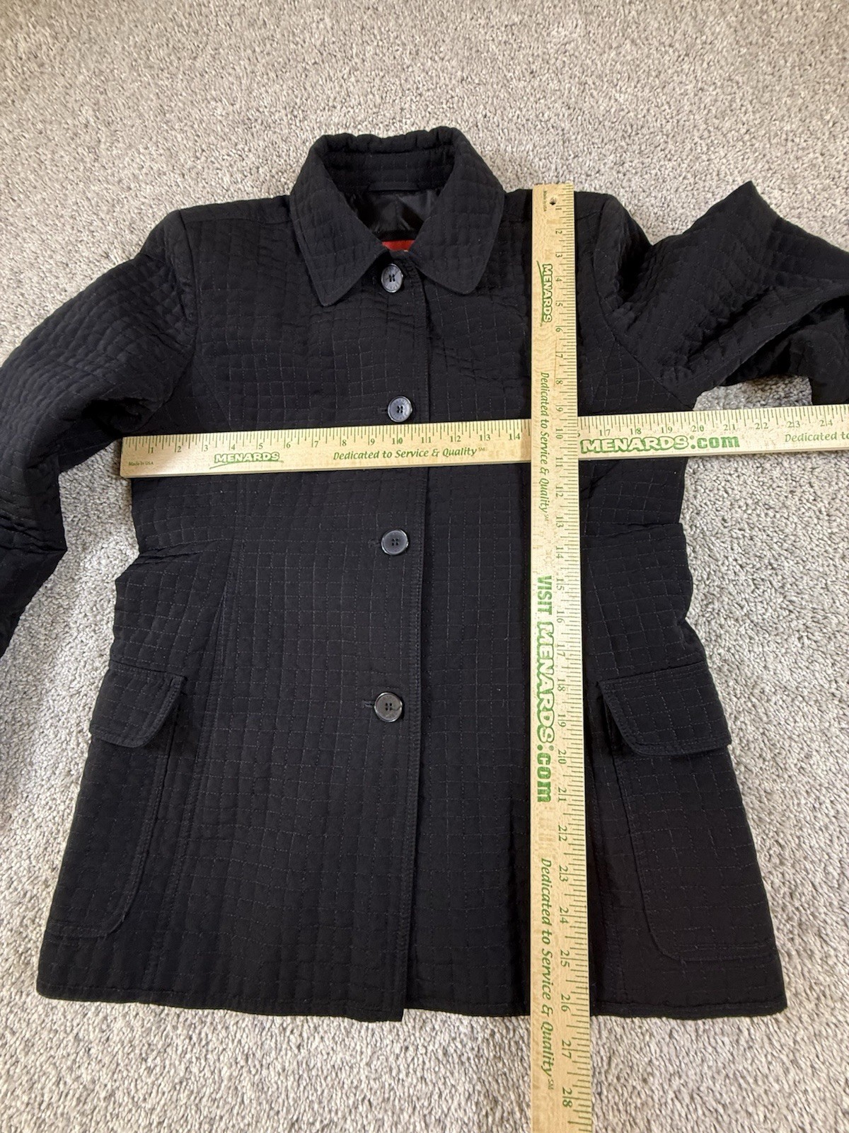 This Vintage Esprit Women's Jacket Coat in size medium is a classic black mid-length jacket with a solid pattern and quilted accents. Made of polyester with a softshell fabric type, it features long sleeves, a button closure, and a nylon lining. The jacket is machine washable and has a regular fit, making it a versatile and stylish addition to any woman's wardrobe. The Esprit brand adds a touch of timeless spirit to this piece, perfect for everyday wear or dressed up for a special occasion. 3922