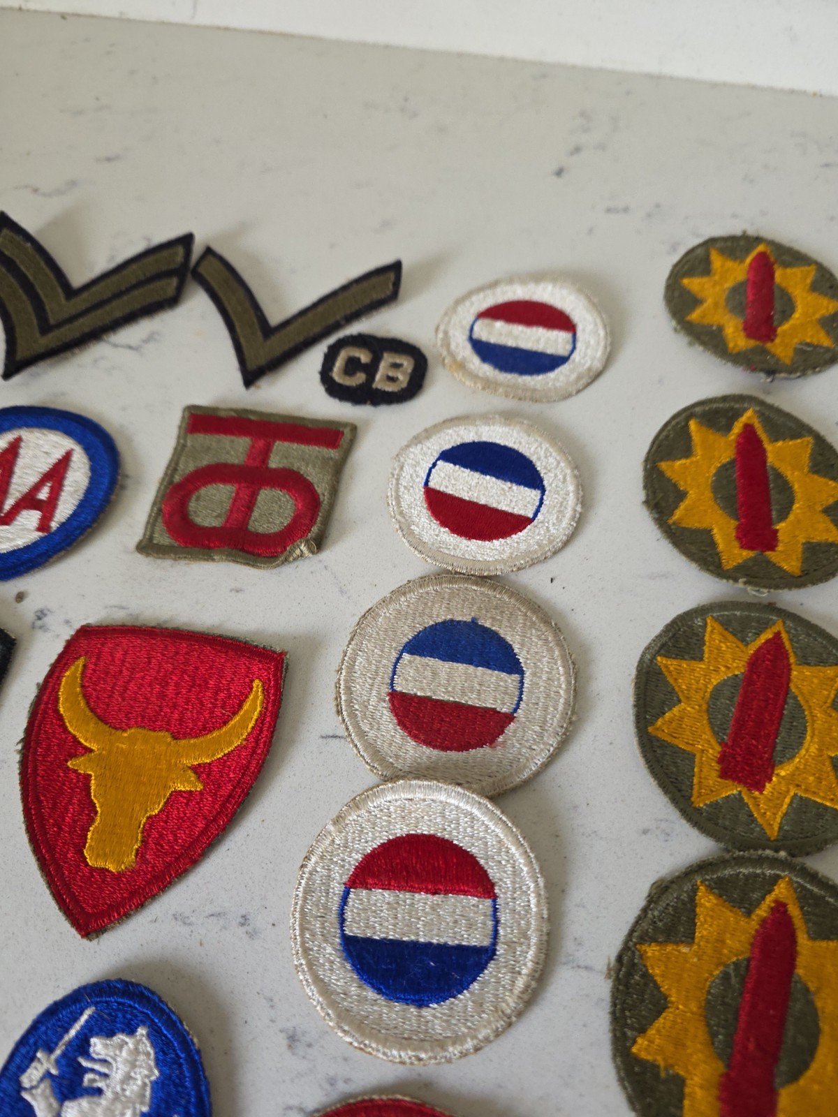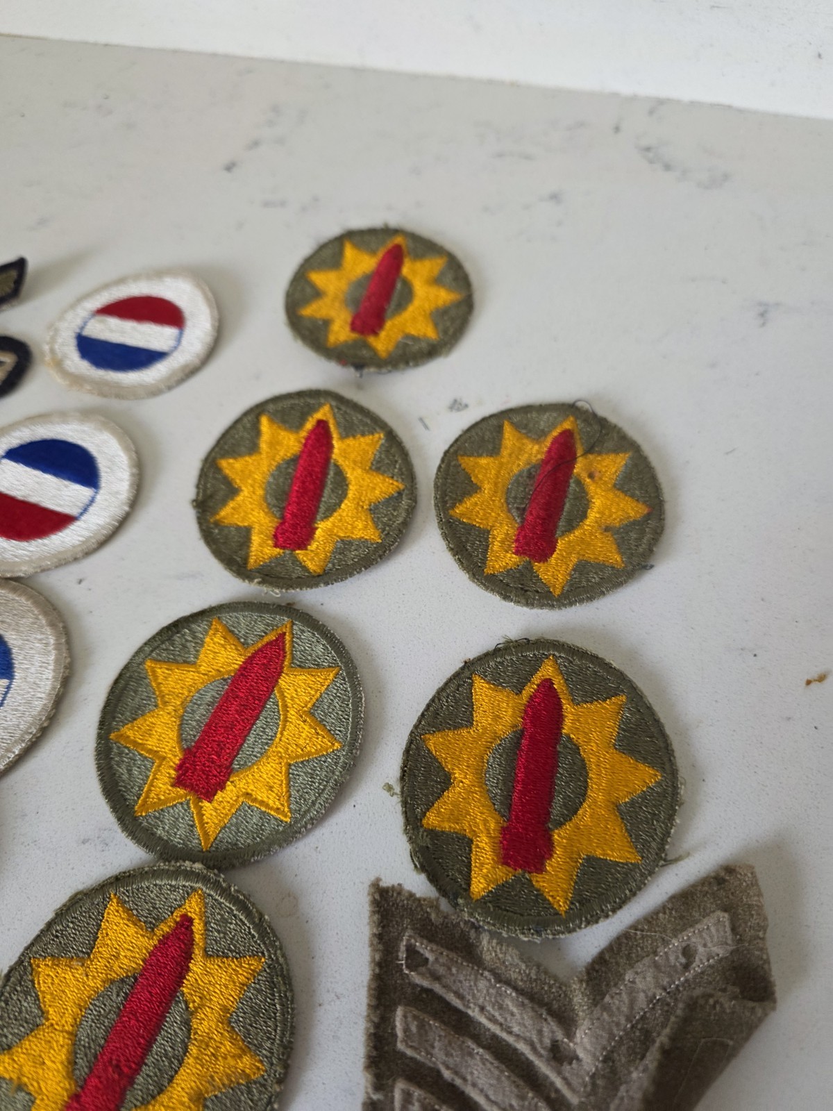This vintage lot of 33 assorted WWII US military patches includes some rare pieces, making it a valuable collection for any collector or history enthusiast. The patches originate from the United States during the period of World War II, providing a tangible connection to this significant era in global history. With an emphasis on militaria, this assortment of original period items serves as a unique window into the past, showcasing the history and significance of the era. Amazing used condition original WW2 patches from service time. Estate lot.