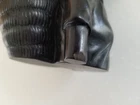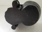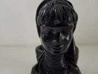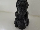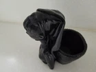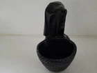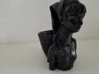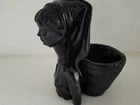 Ethic Ring Neck Woman Solid Black Figure with back basket for planter, trinkets or candle. Beautiful detail on entire item. Solid heavy material is unknown. Good preowned condition but does have a small chip on bottom of one hand as indicated in last photo. Please view all photos.
