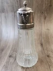 This vintage F.B. Rogers Italy glass and silverplate beverage carafe with ice container is a stunning piece that will add a touch of elegance to any bar or collection. The art deco style and silver color make it a perfect addition for all occasions. Crafted with high-quality materials, this decanter is 14 inches tall and has a width of 6 inches. It weighs 4lb 15oz and features an ice container, making it a unique and practical piece. The F.B. Rogers Silver Company Italy created this original decanter between 1920-1949, and it is a must-have for any collector or lover of vintage barware.