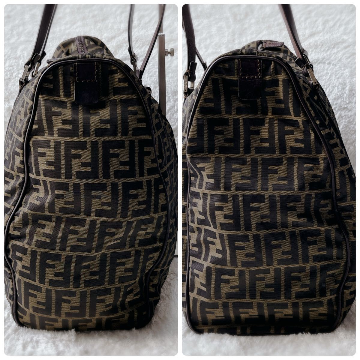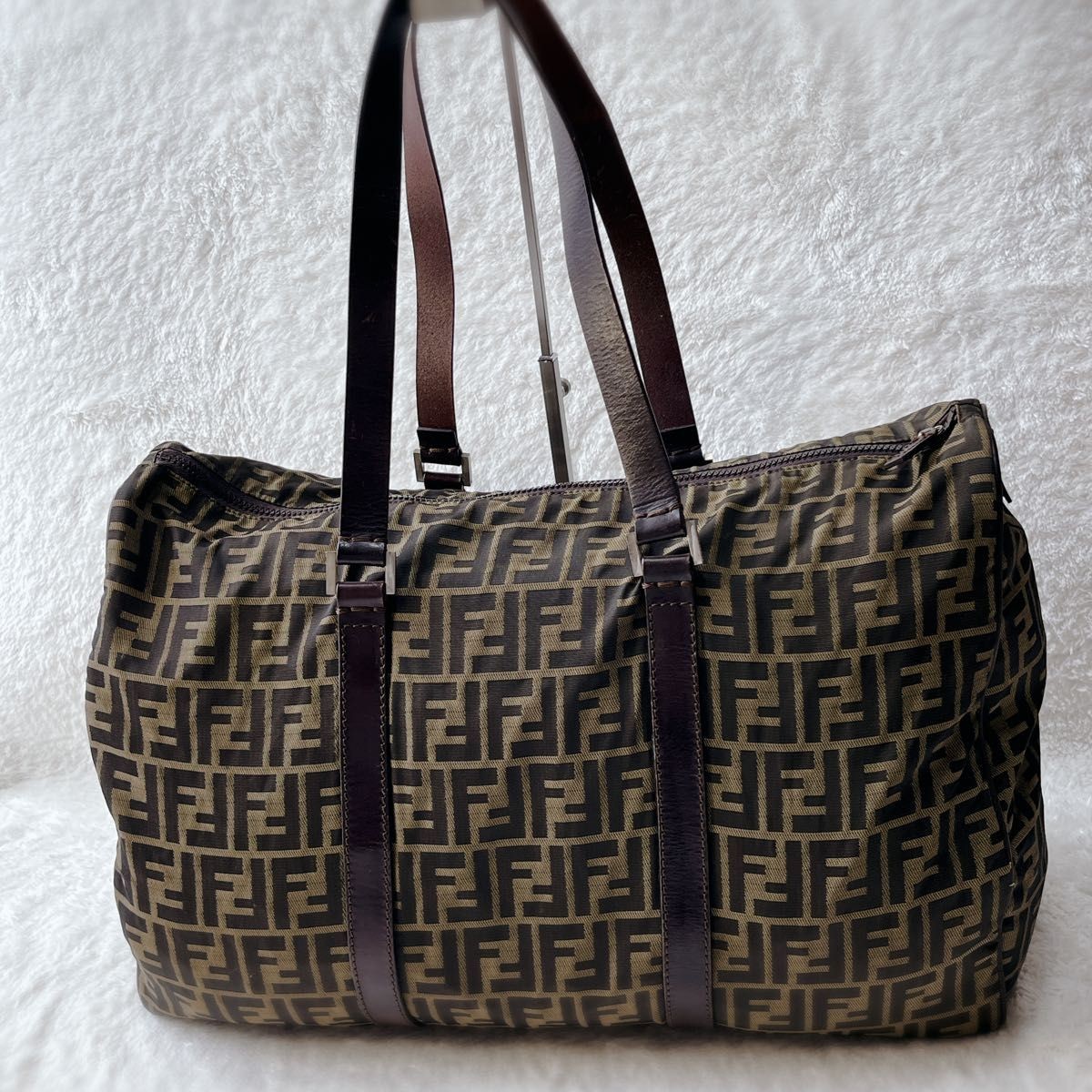 RARE FENDI Zucca Shoulder Bag in Brown Nylon & Leather