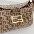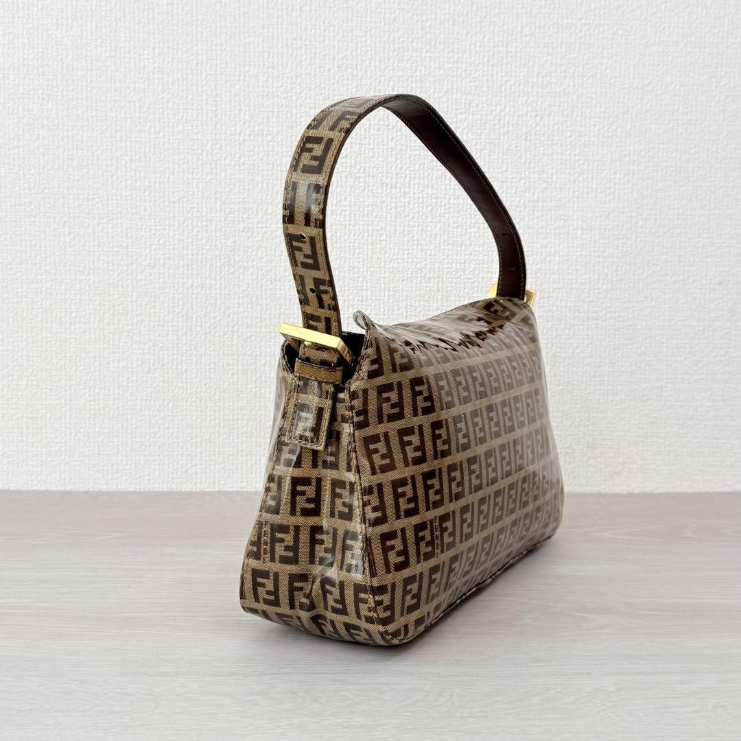 This FENDI Mamma Baguette is a stunning vintage find! The rich brown Zucchino canvas and gold hardware give it such a luxurious yet timeless look. The size is perfect for everyday use, and the adjustable strap makes it super versatile. It’s in excellent condition—no scratches or stains—so it feels like a brand-new treasure. The Italian craftsmanship really shines, and the PVC enamel material keeps it durable. A must-have for any FENDI lover or collector!