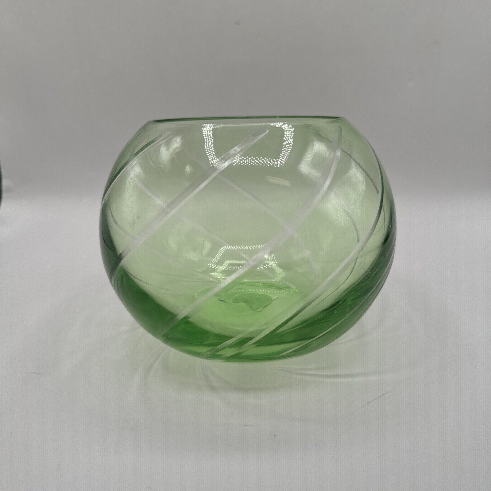 HomeVintage FTD Green Swirl Glass Planter Bowl Vase Midcentury Decor