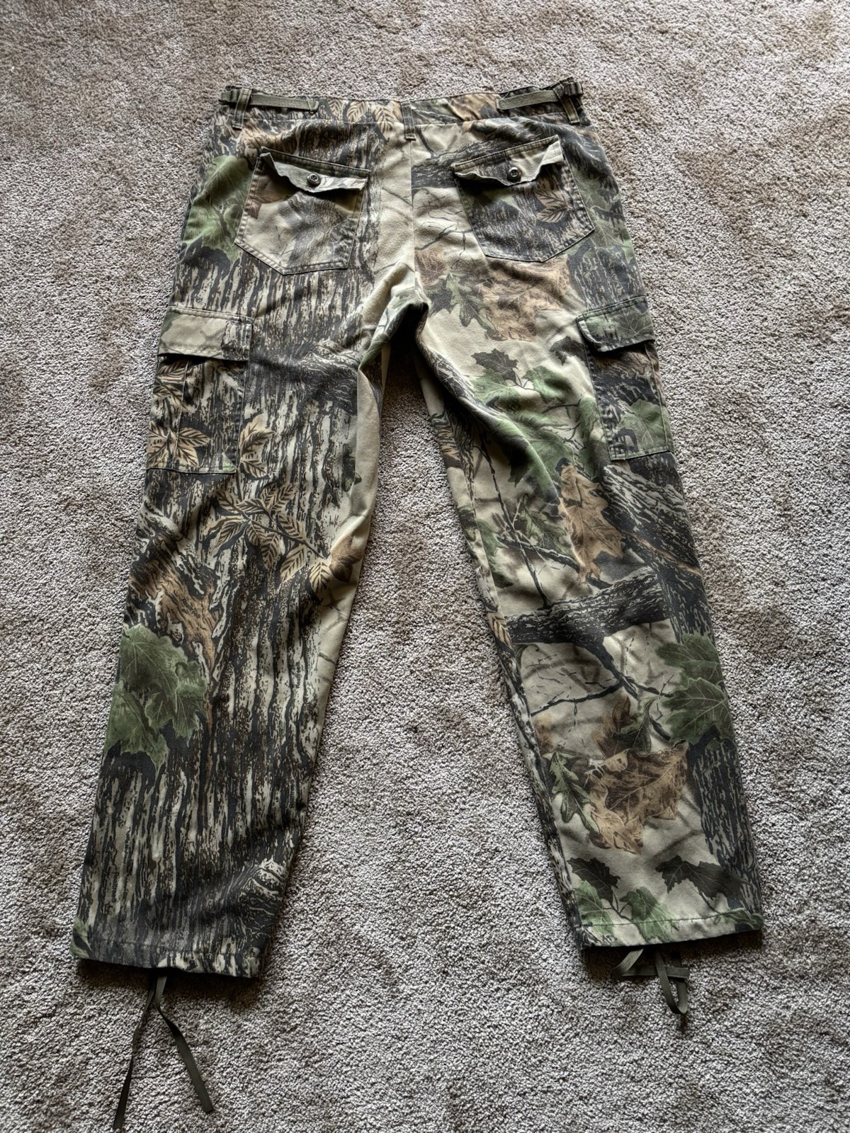 Vintage Realtree Camo Cotton Pants. Super baggy wide leg with an awesome fade! Great condition, no damage, men’s size L.