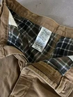 Vintage workwear pants with signs of distress and holing. Beautiful plaid inner-layer with thick duck canvas outer. Great coloring and aging.