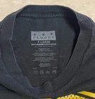 This vintage Famous Stars & Straps shirt is a black graphic tee in size XL, featuring a grunge, 90s, and hip hop theme. Made of cotton knit fabric, this short-sleeved t-shirt has a crew neck and a strap accent. It is double-sided with a famous character design, manufactured in the 2000s in Mexico. The shirt embodies a retro style popular in the early 2000s, making it a unique piece for any fans of vintage fashion or hip hop culture. This shirt is in good preowned condition with light signs of wear and fading from age. Please see ALL photos for a better idea on condition, any measurements, or details to the shirt.