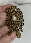 HomeVintage Faux Opal Gold Tone Ornate Framed Victorian Brooch Pin