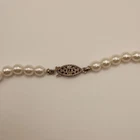 The metal has tarnish please take a close look at the photos for a better description.This is a Vintage single-strand choker necklace, 16 inches long, featuring white faux pearls and a decorative centerpiece of clear rhinestones. The necklace secures with a decorative clasp.
