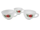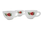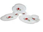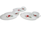 Vintage 6 Piece Federal Milk Glass Rosecrest Snack Tray Set Tea Party Hostess In excellent condition Vintage 6 Piece Federal Milk Glass Rosecrest Snack Tray Set Tea Party Hostess Set. Gorgeous milk glass adorned with delicate red roses. The plate has a indented circle to hold the tea cup in place. The cups have ribbed handles and the bases of the plates have indented checker board patterns. There are no makers marks on the pieces. Measurements cups height 2.25" diameter 3.25" plates height 1" length 10" Fabric milk glass This is a pre-owned item that may show signs of wear. In excellent condition, very light scratches on plates. 14 Day returns accepted under the following conditions: Item must be in the same condition as stated If item shows additional wear buyer will receive a partial refund Buyer pays all shipping costs Refund amount will be for the item price only Please contact me prior to starting a return