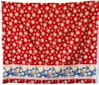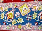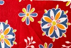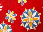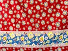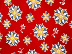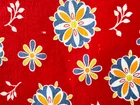 This is a bright and beautiful vintage feed sack fabric. It is bright red with blue, orange, white and yellow stylized flowers and a border of a large paisley pattern. There is a small spot in one corner and there are some pin holes in the center of the fabric (all pictured). There are seam marks on 3 sides. The piece measures 36" by 42-1/2". This feed sack was part of the Living Estate of widely respected Sharon Stark of Sharon's Antiques Vintage Fabrics and Textiles of Eastern PA. She was an author and long time collector and dealer of antique quilts, fabrics and textiles. Sharon is an authority on feed sacks.