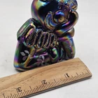 The Fenton Clown Amethyst Purple Blue Irredescent Glass Figurine is a handpainted decorative piece made of glass. Featuring a vibrant purple color with a blue irredescent finish, this figurine showcases a charming clown theme that adds a playful touch to any space. With the Fenton brand known for its quality craftsmanship, this unique piece is sure to be a standout addition to any collection of decorative pottery and glassware. There is a chip on the bottom back. See photos for imperfections sold as is