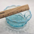 Add a touch of vintage charm to your home decor with this beautiful Fenton Blue Opalescent Glass Trinket Candy Dish Bowl. The bowl features a lovely grape and diamond pattern and measures 6 inches in diameter. Crafted from high-quality glass, this decorative bowl is perfect for storing your small treasures or serving candies, nuts, and other goodies. The bowl is produced in North America, specifically in the United States, and showcases a round shape and mid-century modern style. Its unique blue color and opalescent glass production style make it a stunning addition to any collection. This vintage bowl is sure to impress your guests and add a touch of elegance to your home.
