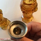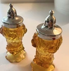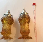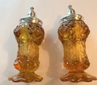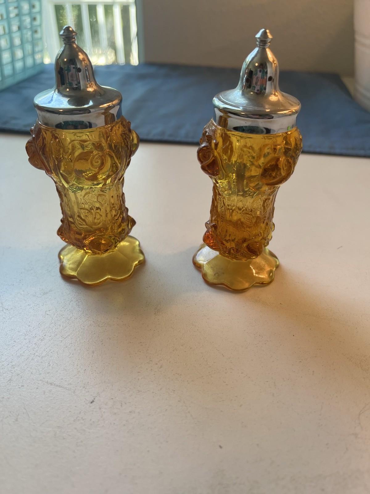 We believe these to be Fenton Cabbage Rose Salt & Pepper Shakers. In wonderful condition so not sure if vintage or new. The lids appear shiny and in good shape with a little corrosion inside, please see pictures. Beautiful Amber color. Would be nice on display or in use. Solid and heavy. Please note - we are a 503C charity (cat and kitten rescue) with a thrift store and not professional eBay sellers. The volunteers do their best to research, authenticate and post items. Please ask questions or request additional photos before you bid or buy. We will carefully pack and swiftly ship your item. ALL proceeds benefit Sheltering Hands Cat Rescue of Lady Lake and Ocala FL. Thank you for your support 😻
