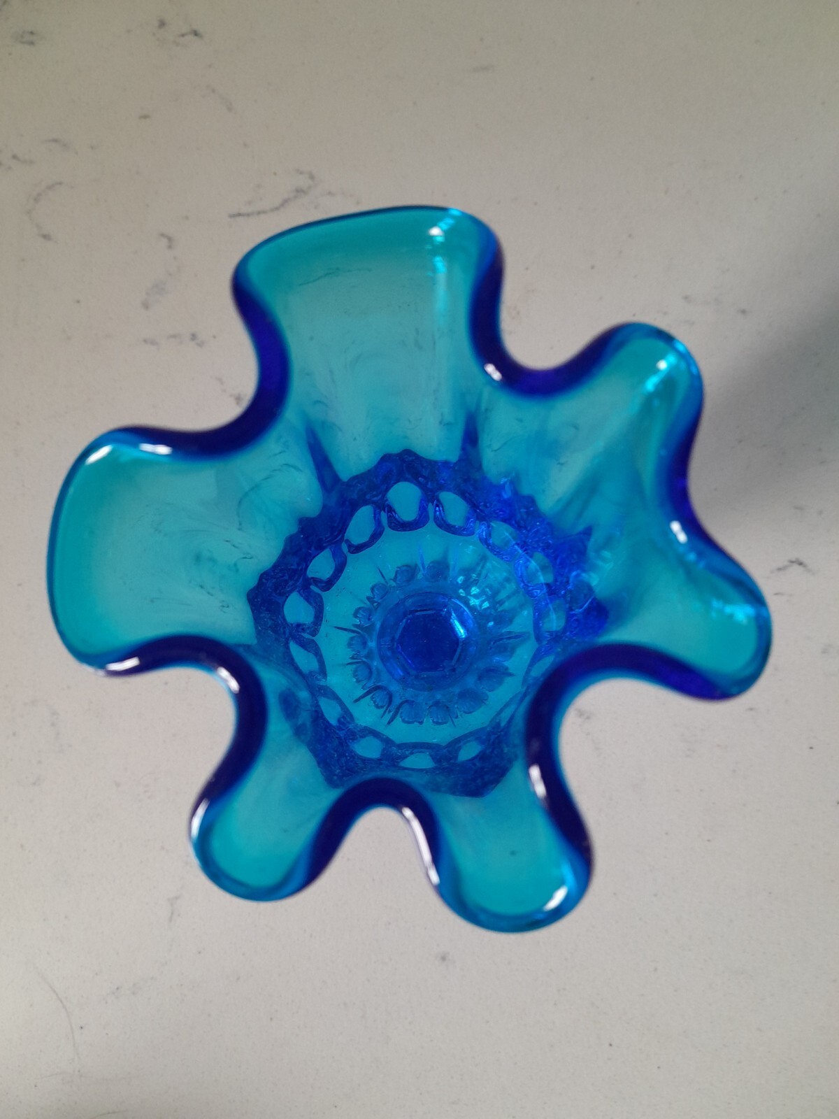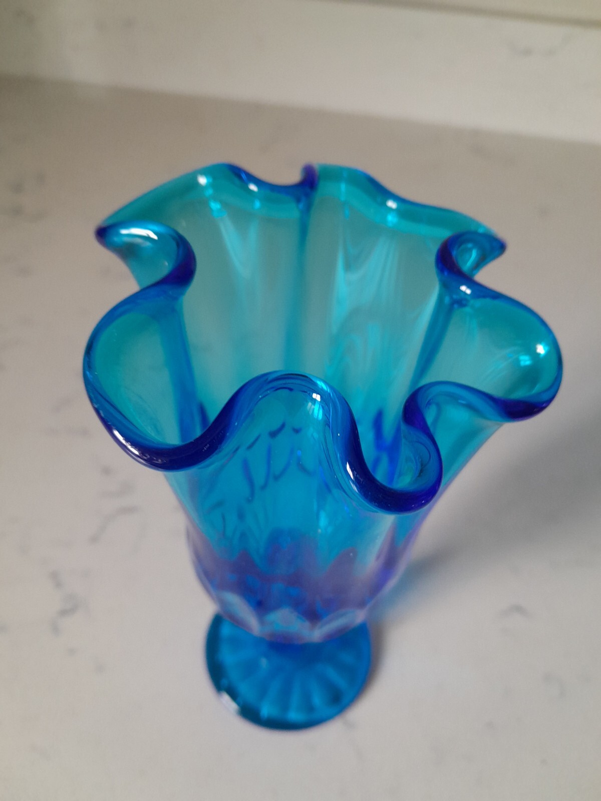 Vintage Fenton Blue Hobnail Glass Crimped Ruffle Edge 3 Inch Bud Vase