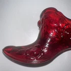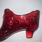 This vintage Fenton Glass Cabbage Rose Red Shoe Slipper is a beautiful figurine made of red glass with a cabbage rose design. The shoe slipper figurine features a floral theme, specifically showcasing flowers, and is crafted from high-quality glass material by the renowned brand Fenton. This unique and charming piece would make a lovely addition to any collection of decorative pottery and glassware, adding a touch of elegance and whimsy to any space.