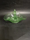 $ 12.9VTG. 1930’s -Jeanette Glass,Amber-Green-Flash-Wedding Bowl-Square Pedestal-Dish