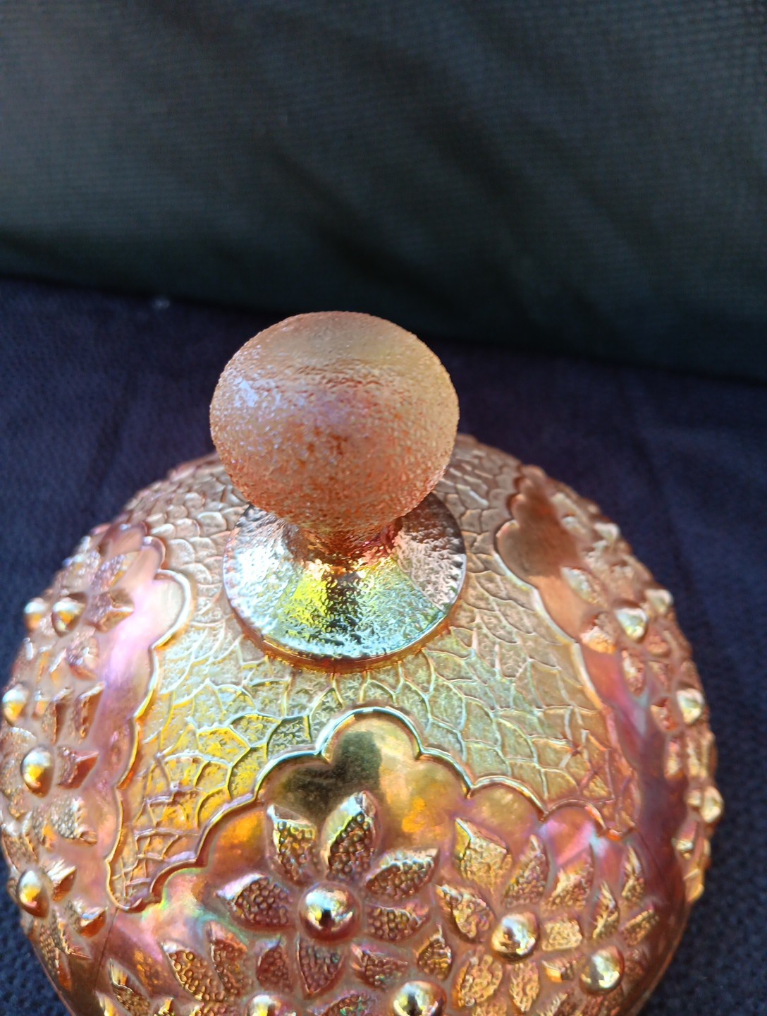 Vintage Marigold Carnival Glass FENTON GLASS ORANGE TREE BUTTER DISH LID ONLY. LID ONLY. SEE PICTURES. Shipping INCLUDES insurance and tracking.