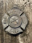 This vintage firefighter toy badge is a must-have for any firefighting and rescue memorabilia collector. The badge features a junior fire chief design with a ladder, ax, and hat. It is made of durable metal and is MISSING the pin on the back. The badge is a great addition to any collection and would make a unique gift for a firefighting enthusiast. It was manufactured in the United States and has a vintage look, with details made of zinc, metal, or pewter (exact material unknown). This rare find is not to be missed!