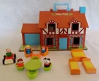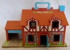 Vintage Fisher Price Play Family Tudor House #952 COMPLETE. This House comes with Kitchen Table and 4 Chairs, 2 Single Beds and 1 Double Bed (Foam for beds has been replaced), 2 Overstuffed Chairs and Coffee Table, with Mom, Dad and 2 Kids and a dog. Also Has a red car. This house is in great shape. Item is used, and has play wear. May have scratches, chips or dings. Please see pictures. We Ship quick in a box to prevent damage, not an envelope. Please see pictures above. From time to time potential buyers like yourself have asked us questions, and so we have started to put together a Frequently asked question list. We are a real company and treat all our customers like we would want to be treated. We give you the highest level of service possible. If you have any problems contact us first and we will solve it to your satisfaction. Smoke Free Zone SHIPPING How and what company do you ship with? We use The United Parcel Service (UPS). We ship every item we sell in a box . Every item is packed with bubble wrap or tissue paper, and we use lots of tape on the box. All boxes are in nice shape. International - Sorry we are no longer doing International shipping.