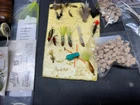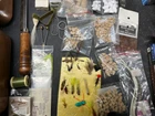 The product is a vintage fishing lot that includes new and used tackle such as hooks, lures, and items for fly fishing. The bait type is crankbait, suitable for freshwater fishing. The bait shape is fish, and the color is multicolor. This fishing lot is versatile, suitable for targeting all fish species. There are tons of line, feathers and other materials for creating your own lures and tools to help with the assembly of the lures for fly fishing and comes within a fishing tackle box