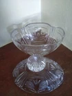 Item Width:8.25inColor:ClearNumber of Items in Set:2Item Height:8inBrand:UnmarkedShape:OvalFinish:GlossyFeatures:Decorative, Lid IncludedVintage:YesMaterial:GlassType:Candy DishPattern:FloralProduction Style:Elegant GlassOriginal/Licensed Reproduction:Original