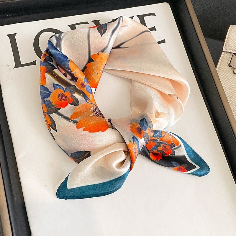 $ 6.13100% Silk Scarf Beige Floral Wrap for Women Head Neck Hair 53cm