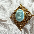 Vintage Florenza Blue Cameo Filigree Faux Pearl Victorian Brooch Pin Gold Tone All items are sold in the condition they are acquired. I do not repair or restore items. * We happily combine shipping for multiple items to reduce shipping costs. Simply message us for a combined shipping invoice * We do consider all offers Please look at the photos closely as I try to take pictures of any flaws. Items may have wear from age We appreciate a 5-star positive feedback in all 5 categories and promise the same in return. Should you feel you did not receive a 5-star experience in one or more categories, please contact us before leaving feedback. We will make every effort to ensure 100% satisfaction. If there is a problem that I did not mention in the listing, please contact me so that I can try to make things right. Please give me an opportunity to take care of the issue instead of contacting eBay or leaving negative feedback. I can’t help if I don’t know about the issue though. I want to provide excellent customer service. If I should overlook something, it is not my intention. Thanks for looking! Sometimes we recycle cardboard boxes for shipping – often we use them as the outer box