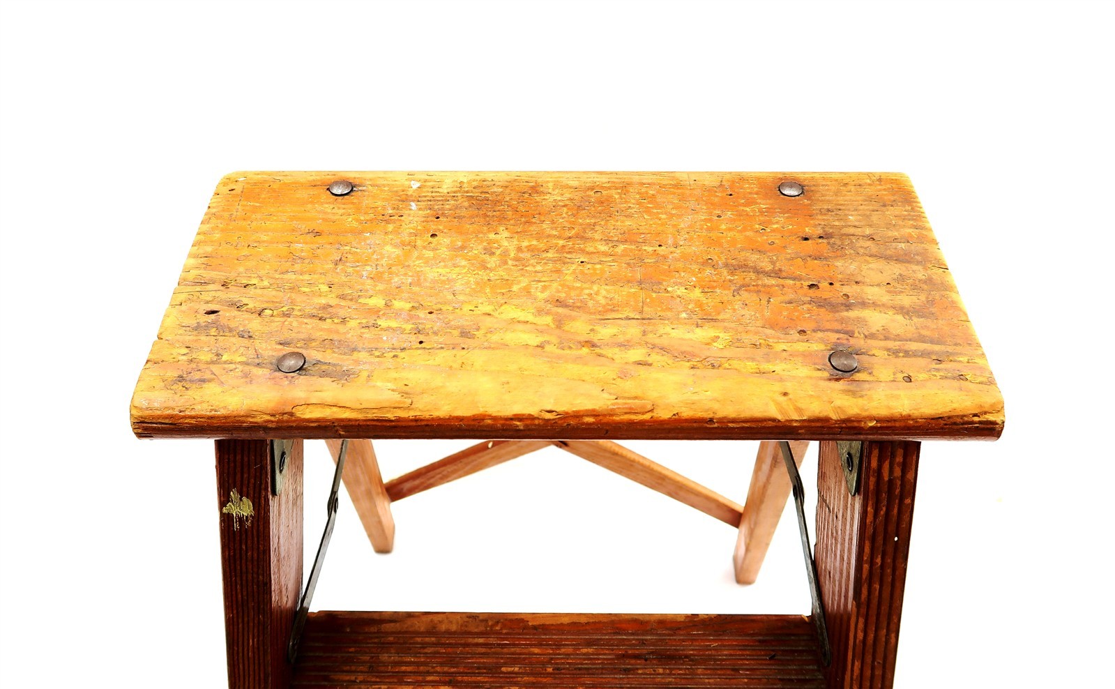 Vintage WOODEN STEP LADDER Folding 22" Tall with 2 Steps ~ Stool Folds Flat This eBay listing is for a used/vintage wooden step ladder/stool that comes as you see pictured in the listing and noted above. With this stool unfolded and in it's upright position, it measures 22" tall, 15" wide and 18" deep. With this stool folded flat, it measures just over 15" wide, 25" long and 5.5" deep. Seller Location Reference - Loft 2/Top BID IN CONFIDENCE – CHECK MY FEEDBACK! My goal is your satisfaction. I leave positive feedback right after the payment is received for all orders!! If you plan to leave anything less than positive feedback and 5 stars - please let me know so that I can work out any problems that you may have. I aim to please!! SHIPPING & HANDLING FOR US BIDDERS We ship ASAP upon payment as noted above within 1 business day 99% of the time!! We normally pack up your new treasures 2 - 3 times a day and ship using USPS and Fedex Ground so that you get your items in a timely fashion. As always - there is no charge for local pickup on any of my items!! SHIPPING AND HANDLING FOR INTERNATIONAL BIDDERS Import duties, taxes and charges are not included in the item price or shipping charges. These charges are the buyer’s responsibility. Please check with your country’s customs office to determine what these additional costs will be prior to bidding/buying.” THANK YOU AND HAVE A WONDERFUL DAY!! Powered by SixBit's eCommerce Solution
