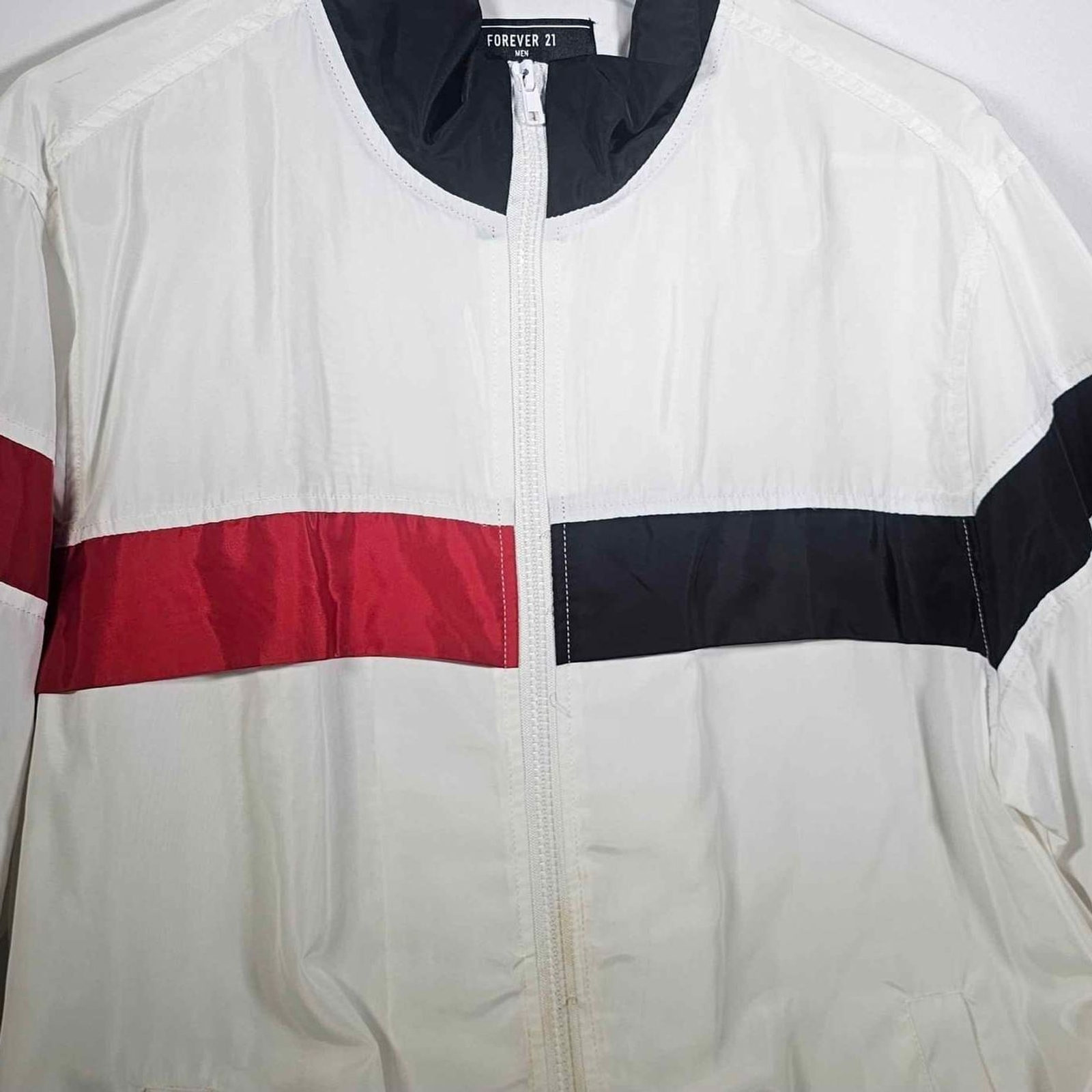Vintage Forever 21 Full Zip Men's Jacket - Size Large. Colors are White, Red and Black. Pre-Owned.